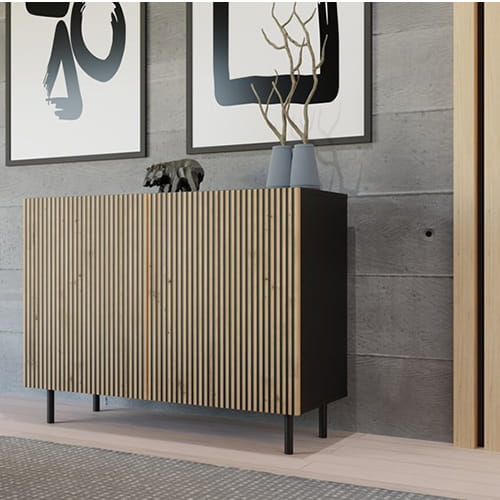 Vă prezentăm cea mai recentă propunere din oferta noastră - comoda Modern. Această comodă modernă cu fațade canelate și două uși este alegerea perfectă pentru cei care caută un mobilier funcțional și elegant, care să adauge strălucire și un stil aparte în dormitor, living sau camera copilului. Un punct de atracție și o noutate incontestabilă sunt fațadele canelate ale ușilor, așezate vertical, imitând lamelele. Eleganța, stilul și rafinamentul aparte sunt caracteristicile care definesc această comodă.