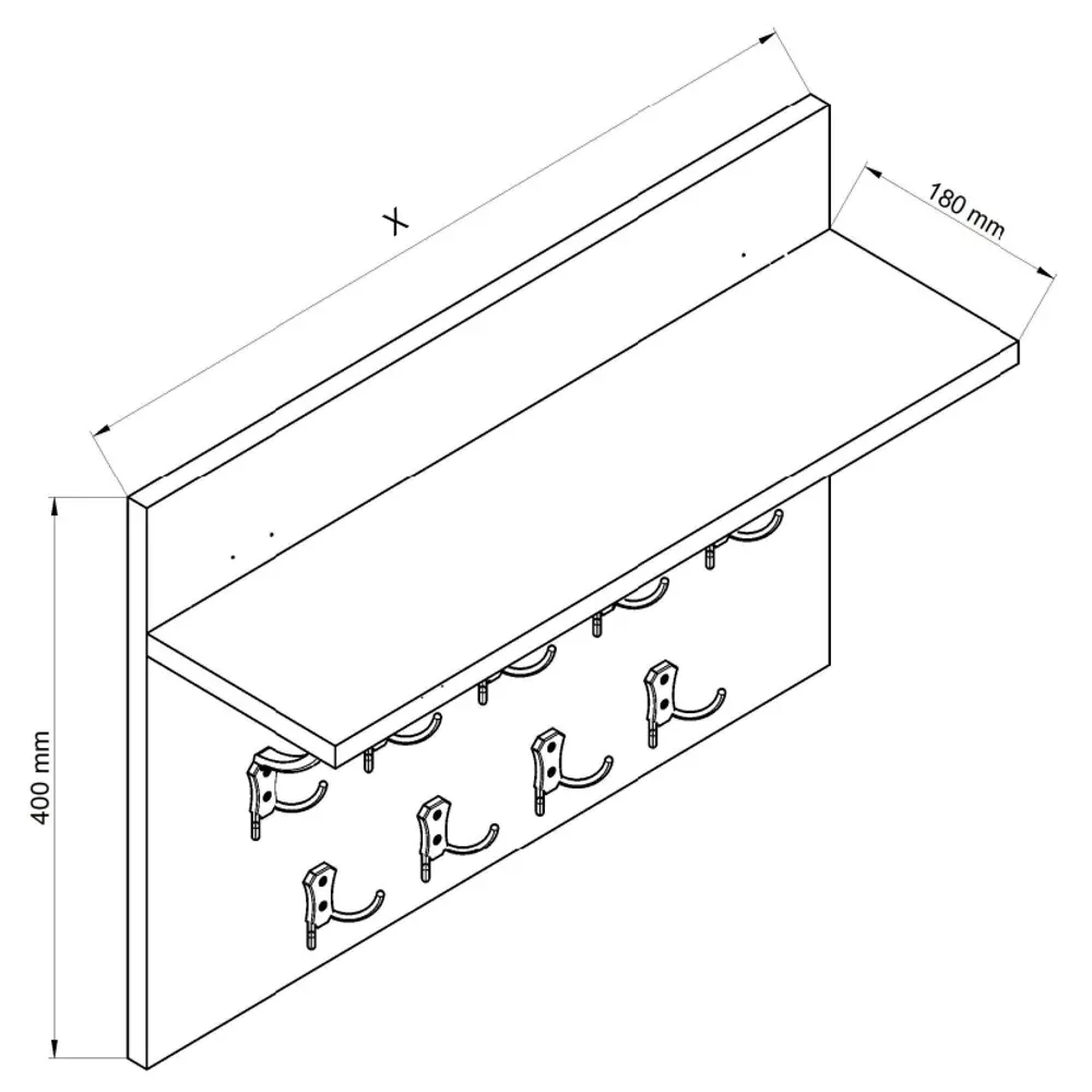 Umerașul orizontal are o formă unică prin simplitatea sa. Este usor de montat pe perete. Nu ocupă mult spațiu și ajută la organizarea tuturor articolelor de îmbrăcăminte exterioară și a altor accesorii, precum genți de cumpărături, rucsacuri pentru copii și umbrele.