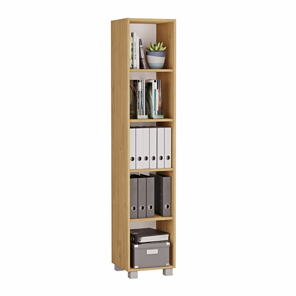 Dacă este nevoie de mai mult spațiu de depozitare, se pot amplasa fără probleme mai multe rafturi unul lângă altul. Raftul este fabricat din placaj laminat de înaltă calitate, ceea ce asigură nu numai durabilitatea sa adecvată, ci și obținerea aspectului dorit. Este disponibil în 16 culori diferite, ceea ce permite alegerea celei mai potrivite pentru biroul și aranjamentul său. Raftul stă pe picioare late, ceea ce asigură durabilitatea sa și facilitează curățarea chiar și sub rafturi.