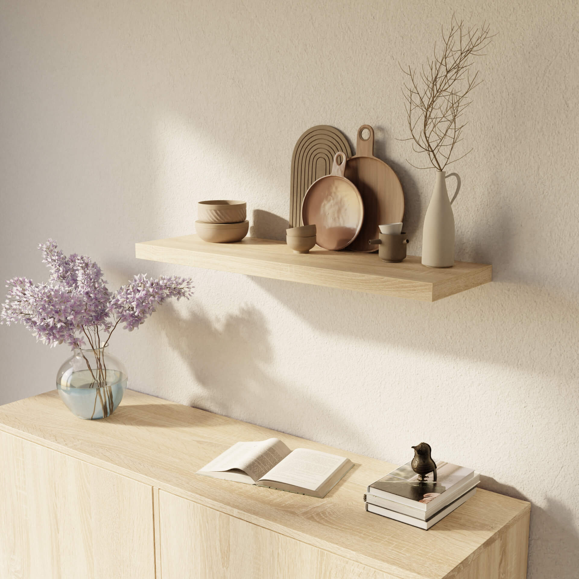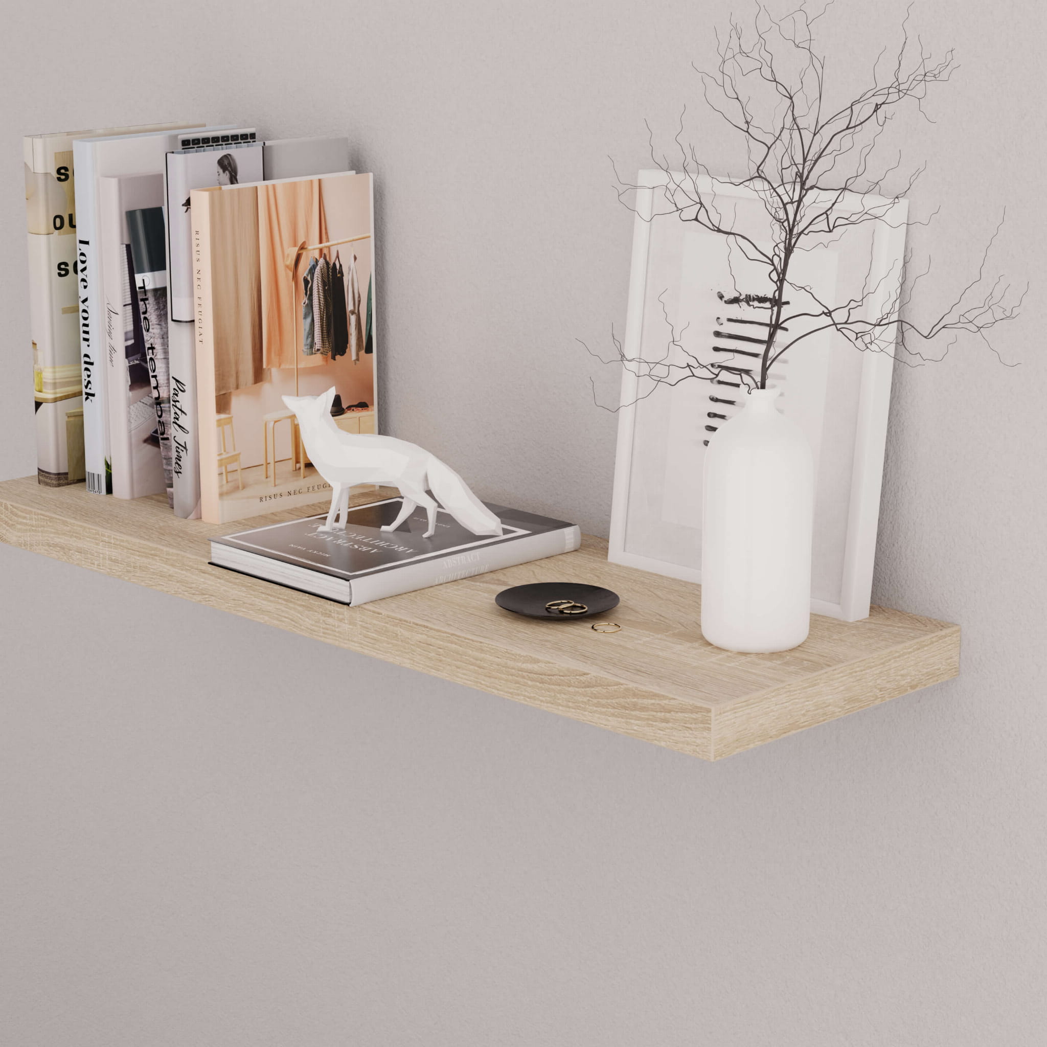 Raftul suspendat modern este realizat din placă laminată de înaltă calitate grosime 36 mm. Asta înseamnă că este o piesă de mobilier solidă și durabilă, pe care poți păstra în siguranță cărțile tale preferate și alte accesorii. Avantajul său special este minimalismul total - nu are ornamente suplimentare și complet invizibil montarea pe un braț ascuns.