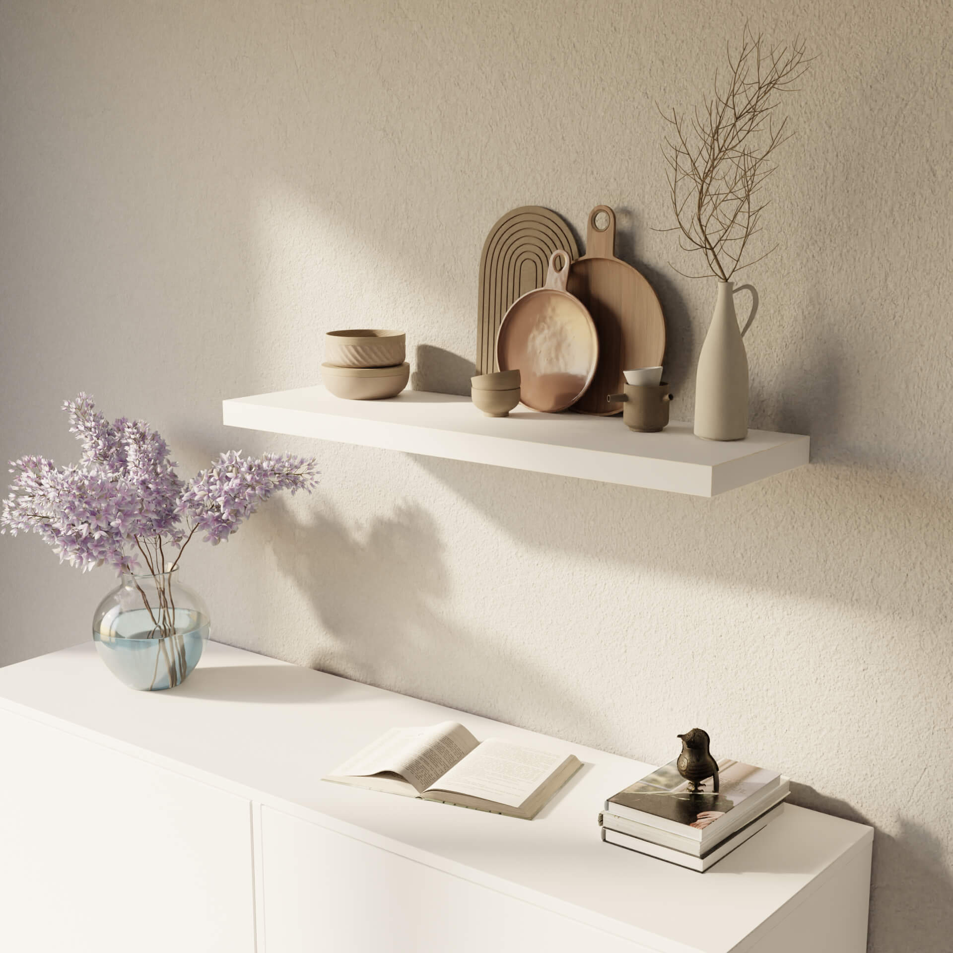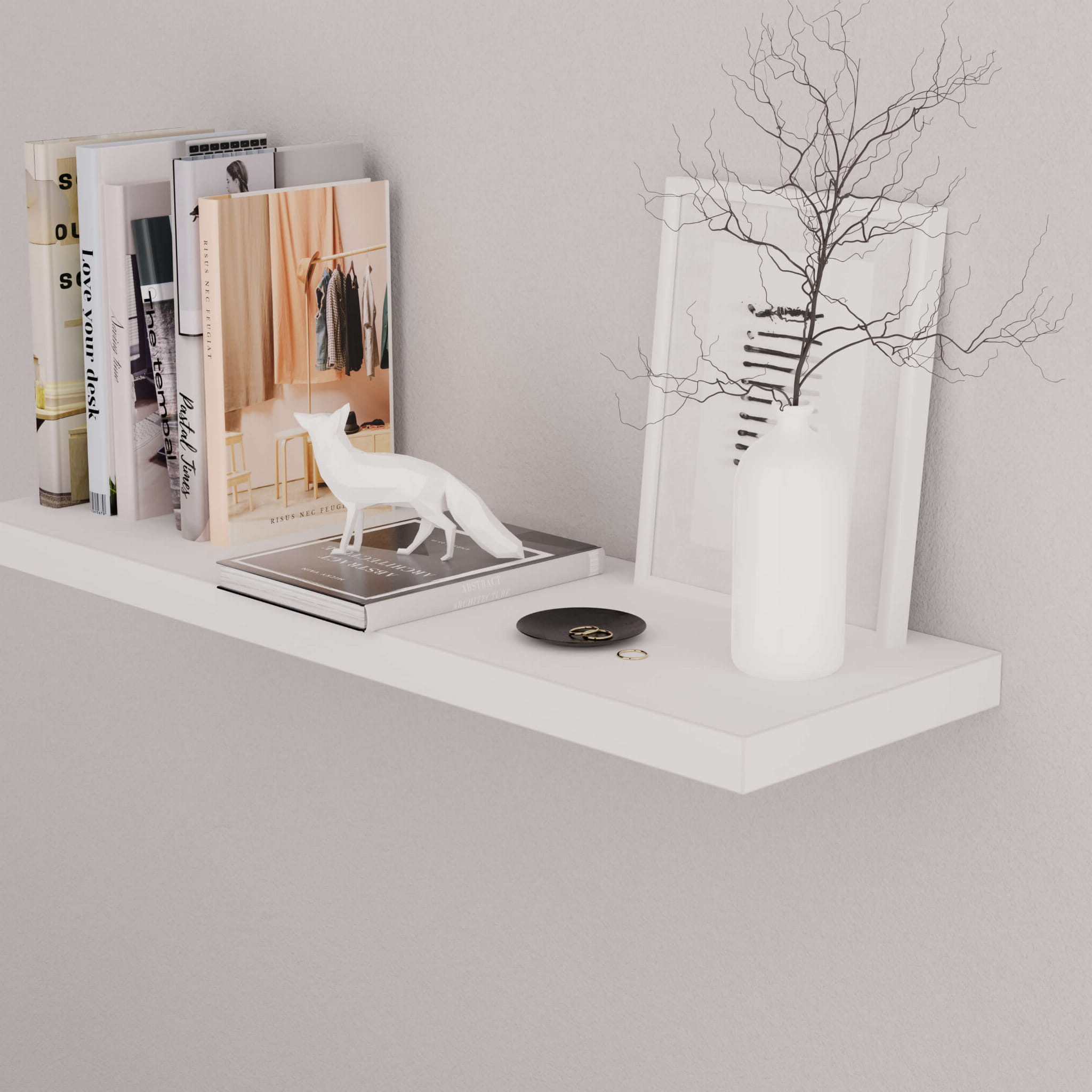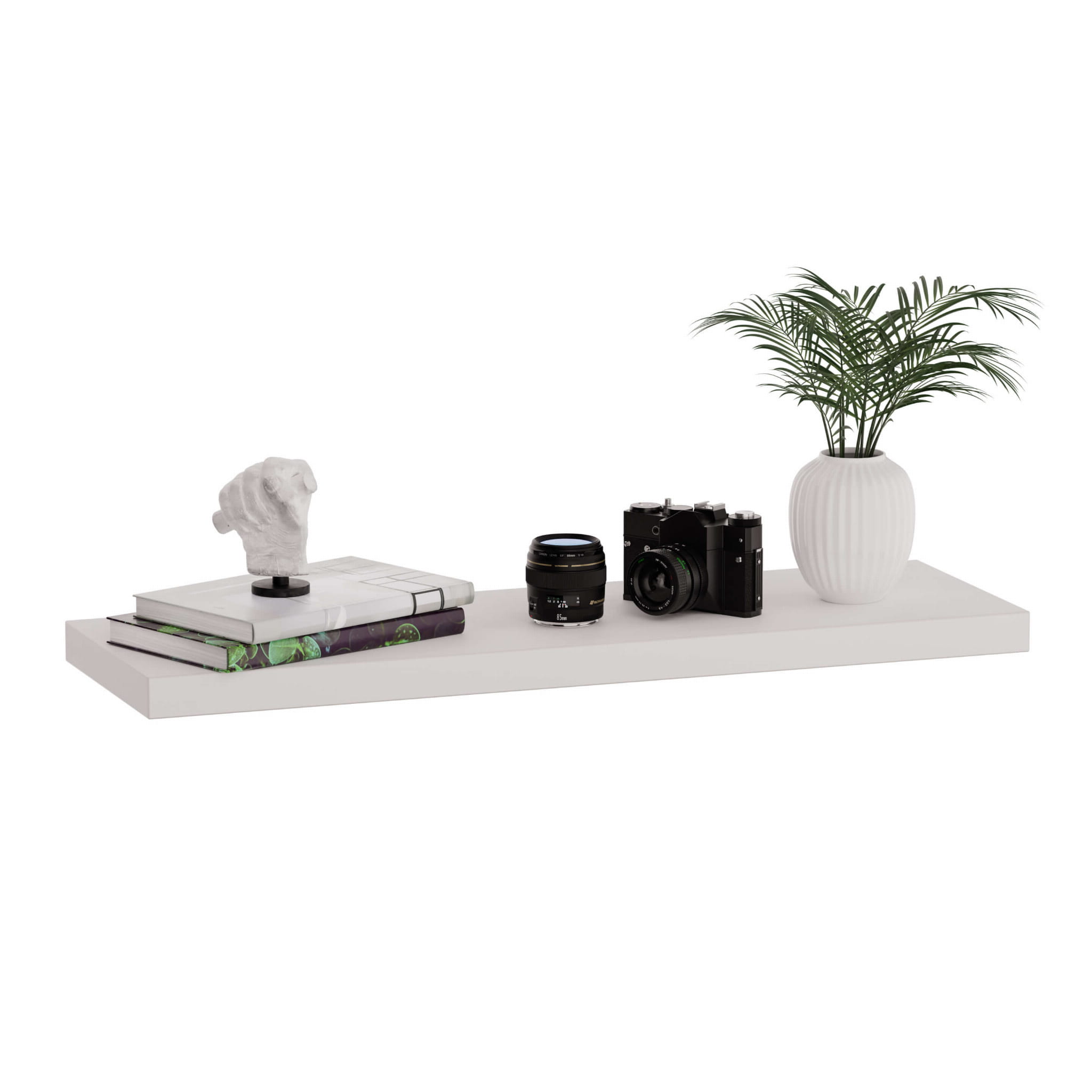 Raftul suspendat modern este realizat din placă laminată de înaltă calitate grosime 36 mm. Asta înseamnă că este o piesă de mobilier solidă și durabilă, pe care poți păstra în siguranță cărțile tale preferate și alte accesorii. Avantajul său special este minimalismul total - nu are ornamente suplimentare și complet invizibil montarea pe un braț ascuns.